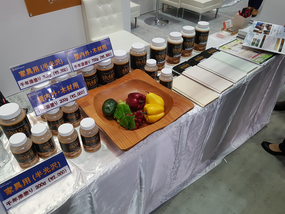 이번전시회에서 신제품 천년옻칠 벽지용 개발하여 전시중에 있습니다.