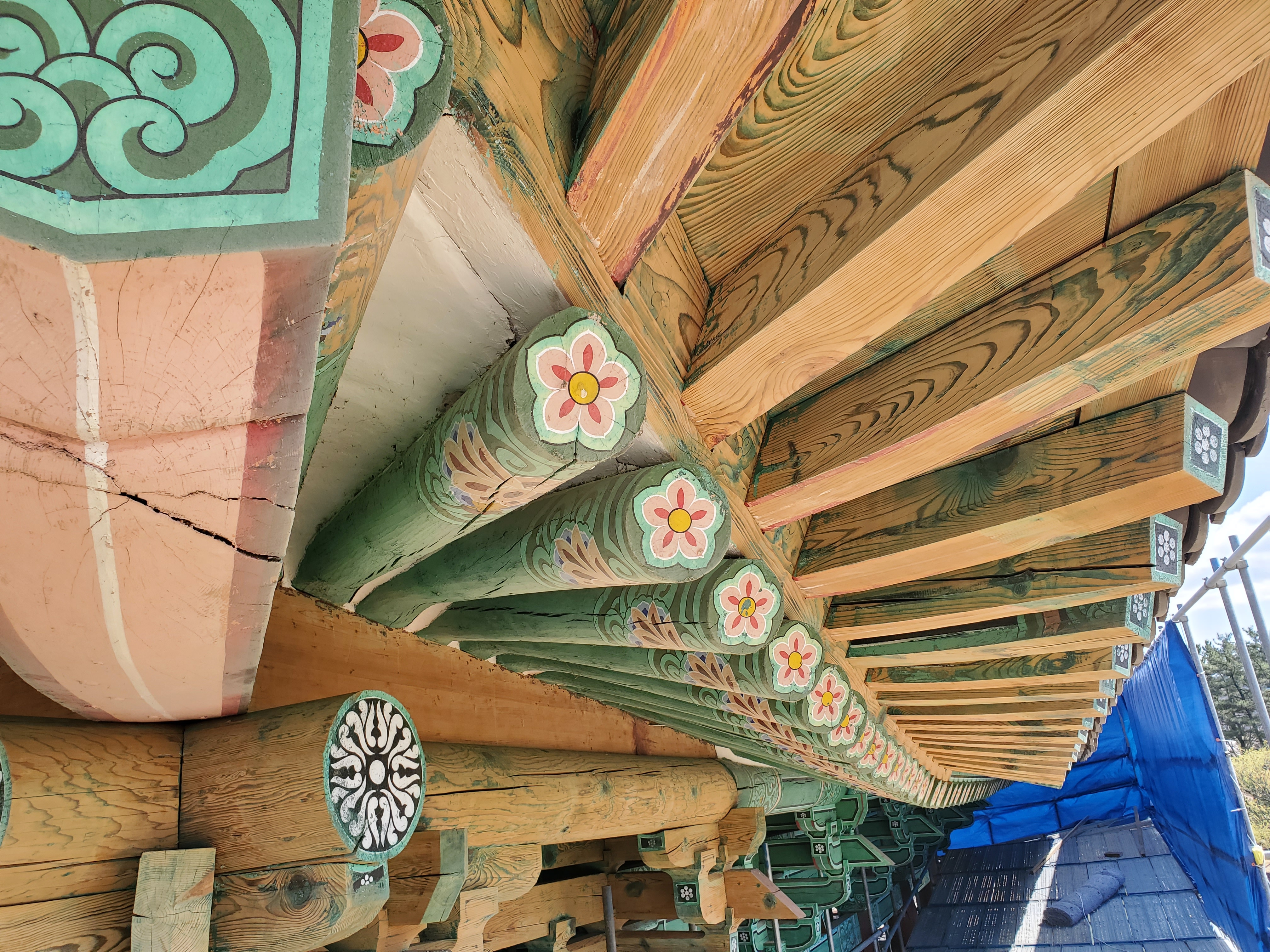 경주 안압지 단청 제거 공사 - 에어대패 시공-